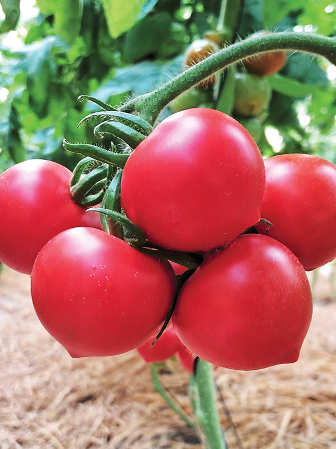 A prolific variety that produces clusters of small, round tomatoes with a vibrant red color...
